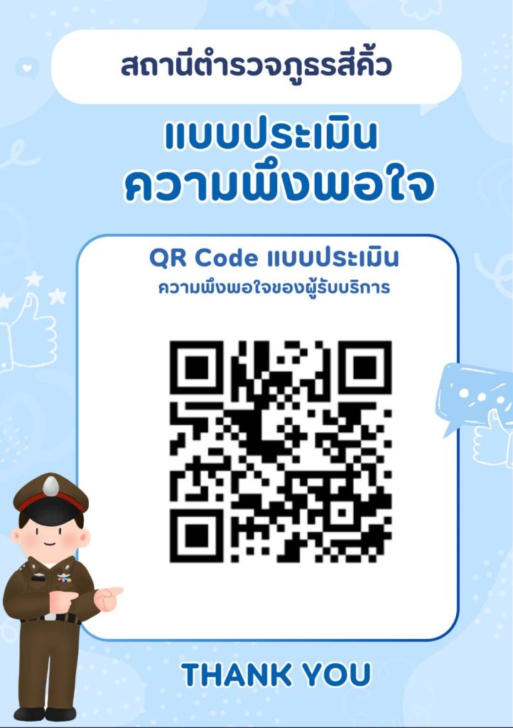 สถานีตำรวจภูธรสีคิ้ว ขอเชิญชวนประชาชน หรือผู้มารับบริการ ร่วมประเมินความพึ่งพอใจของผู้รับบริการ ตามพระราชบัญญัติตำรวจแห่งชาติ พ.ศ. 2565 มาตรา 82 วรรคสอง ประจำปีงบประมาณ พ.ศ. 2568 เพื่อนำข้อมูลไปกำหนดนโยบายการให้บริการ ปฏิบัติงานของข้าราชการตำรวจให้มีประสิทธิ์ภาพและความพึงพอใจในการให้บริการประชาชนมากยิ่งขึ้นไป โดยการสแกน QR-Code นี้