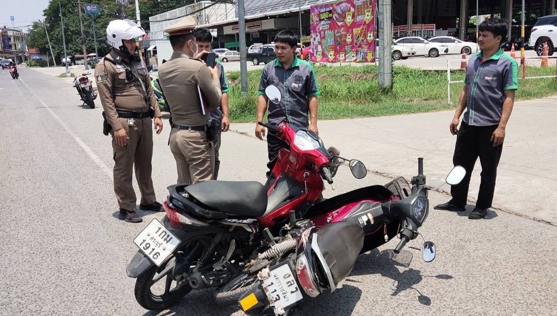 ตรวจจุดเกิดเหตุ รถจักรยานยนต์ชนรถจักรยานยนต์ บาดเจ็บเล็กน้อยรถได้รับความเสียหาย
