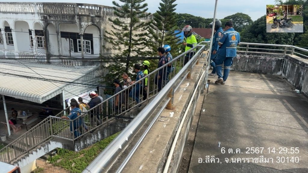 ระงับเหตุผู้ป่วยซึมเศร้าเกรงว่าจะกระโดดสะพานลอย เกลี้ยกล่อมอยู่อาการสงบ และนำตัวลงมาในที่ปลอดภัยเเล้ว