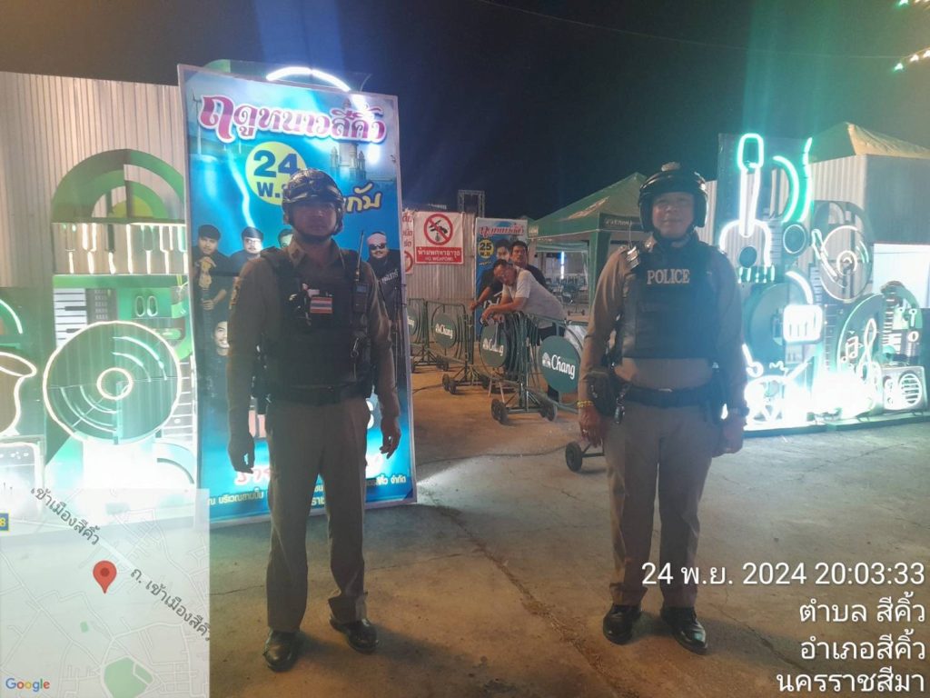 วันที่ 24 พ.ย.๖๗ พ.ต.ท.สุวรรณ์โชติ พันธุ์ศรี รอง ผกก.ป.สภ.สีคิ้ว , พ.ต.ท.อธิสรรค์ โพธิ์ศรี สวป.สภ.สีคิ้ว พร้อมกำลัง สายตรวจรถยนต์ สายตรวจรถจักรยานยนต์ ร่วมรักษาความปลอดภัยเนื่องในงานฤดูหนาวสีคิ้ว