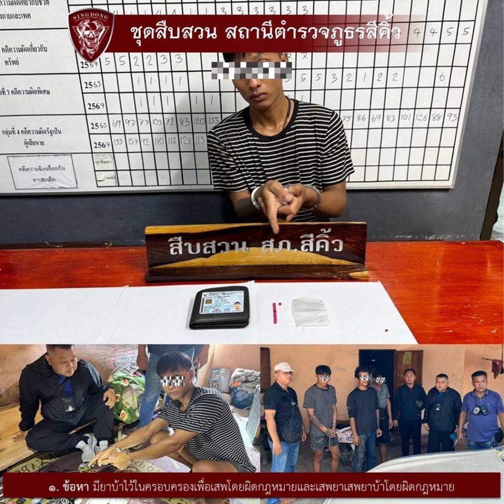 วันที่ ๑๕ พฤศจิกายน ๒๕๖๗ เวลาประมาณ ๑๑.๐๐ น. ภายใต้อำนวยการของ พ.ต.อ.ศักดิ์สิทธิ์ คงศักดิ์ตระกูล ผกก.สภ.สีคิ้ว ได้มอบหมายสั่งการให้ พ.ต.ท.ปัญญา หมื่นศรี รอง ผกก.สส.สภ.สีคิ้ว, พ.ต.ท.สำราญ ธรรมวุธ สว.สส.สภ.สีคิ้ว พร้อมด้วยชุดสืบสวน ได้ร่วมกันจับกุมความผิด
