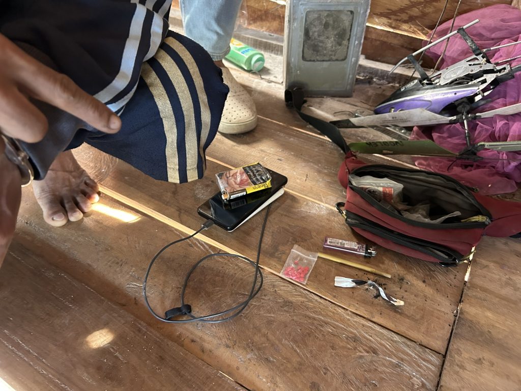 – อุปกรณ์การเสพ ประกอบด้วย ไฟแช็คดัดแปลงสภาพ กระดาษฟอยล์ หลอดดูดยาบ้า
