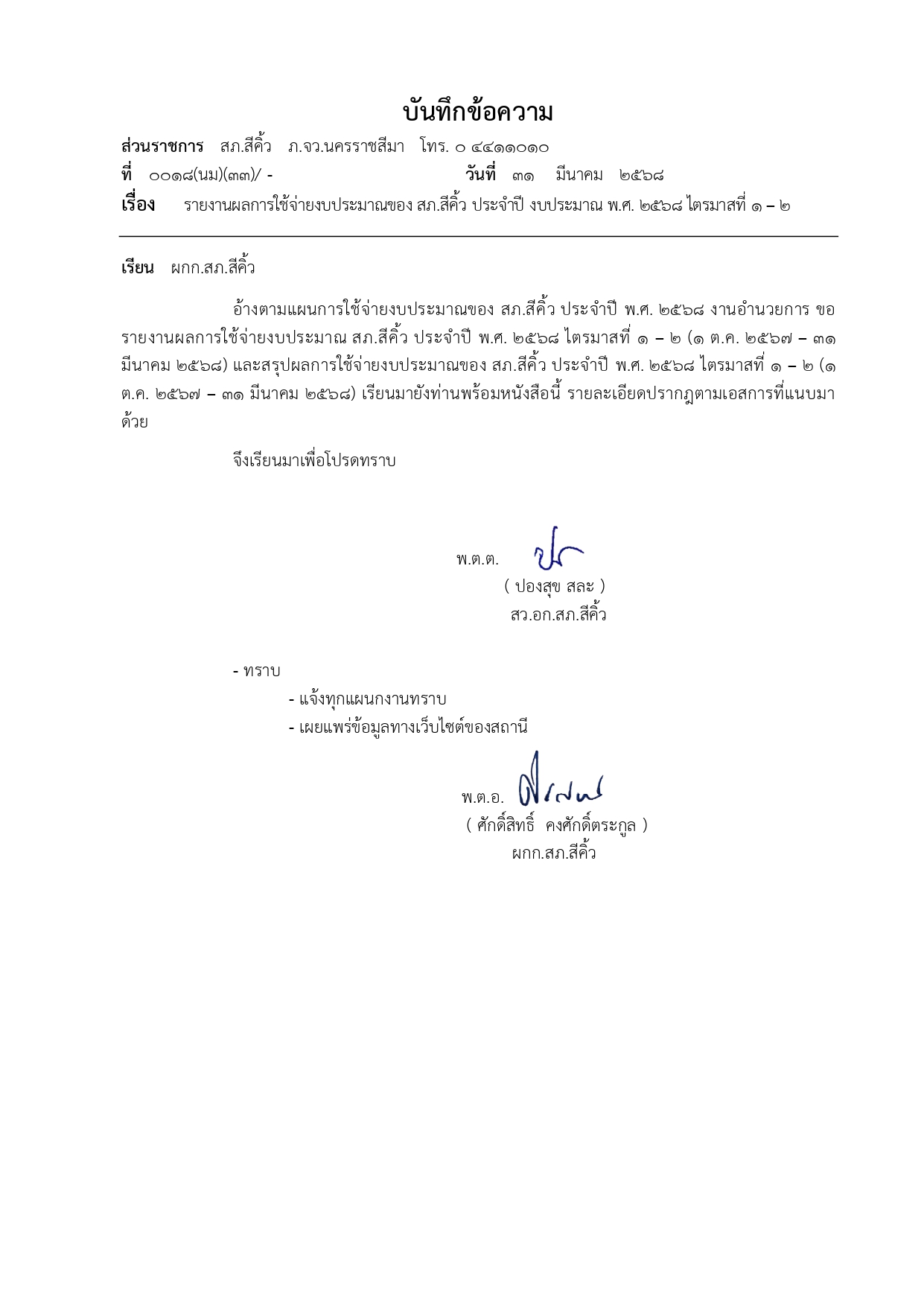 รายงานการใช้จ่ายงบประมาณประจำปี 2568